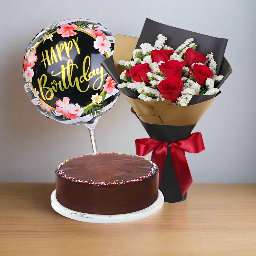 Pamper your special someone with a Choc-A-Lot Romance, with the perfect gift set. Featuring our ravishing hot romance rose bouquet, alongside a delicious chocolate rainbow cake and a birthday balloon - this set is sure to make them feel all the love, on their big day.