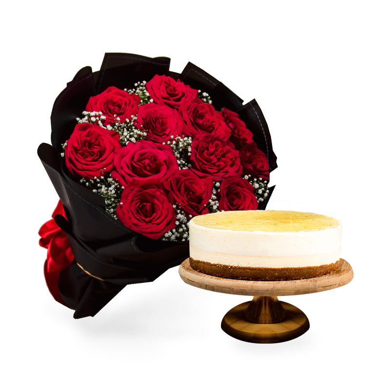 The Perfect Gift Combo: Wonderful flower bouquet + Delicious Cheese Cake.