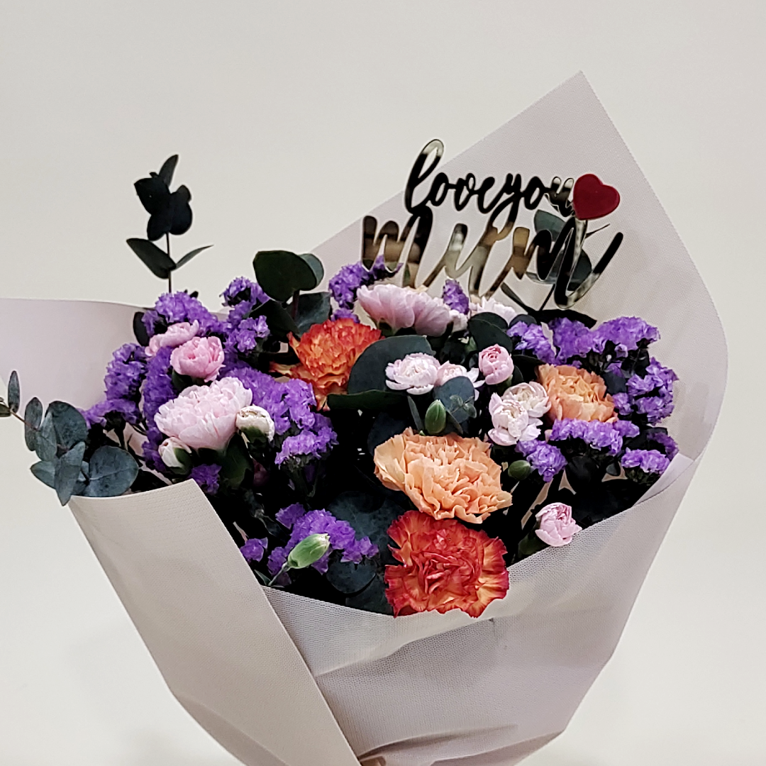 Add on a "Love You Mum" flower bouquet topper to complete your surprise