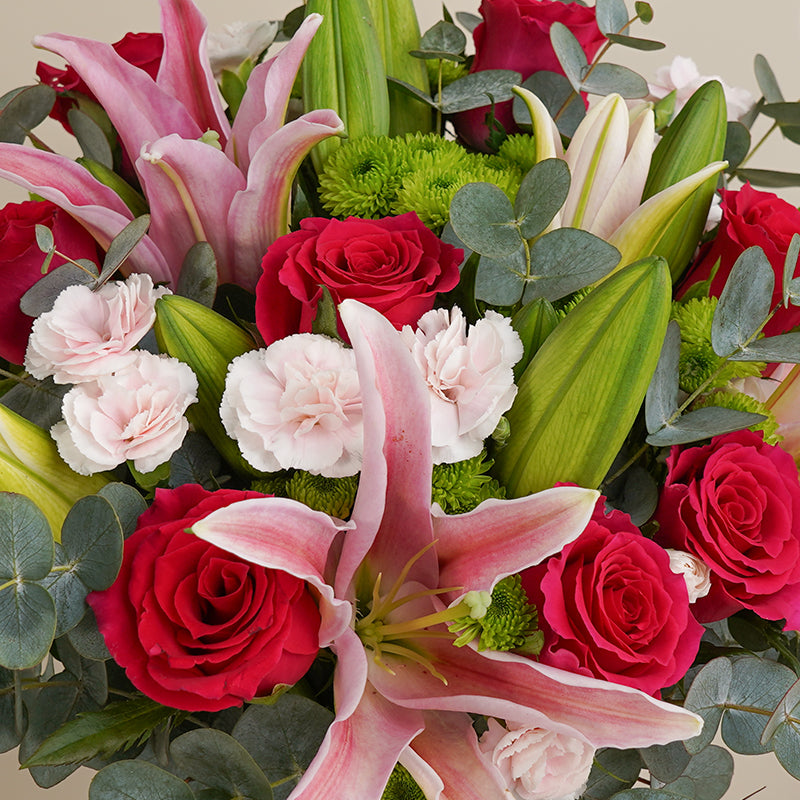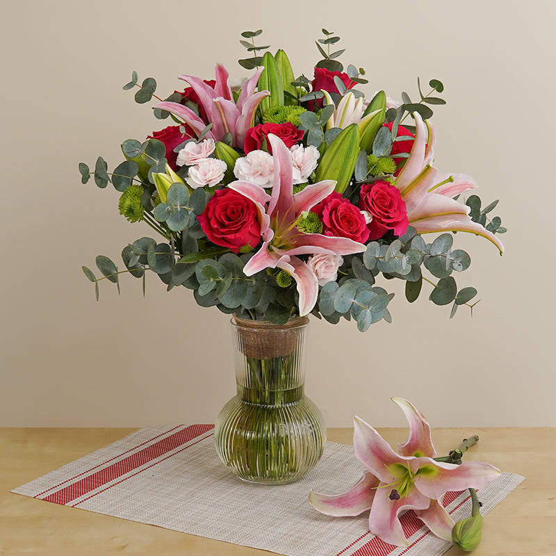 Inspired by the capital of Malta in the Mediterranean, Valletta comes as a splendid collection of lilies, roses, and carnations. - This arrangement is not only great for birthdays but is also the perfect get well soon gift and many other occasions.